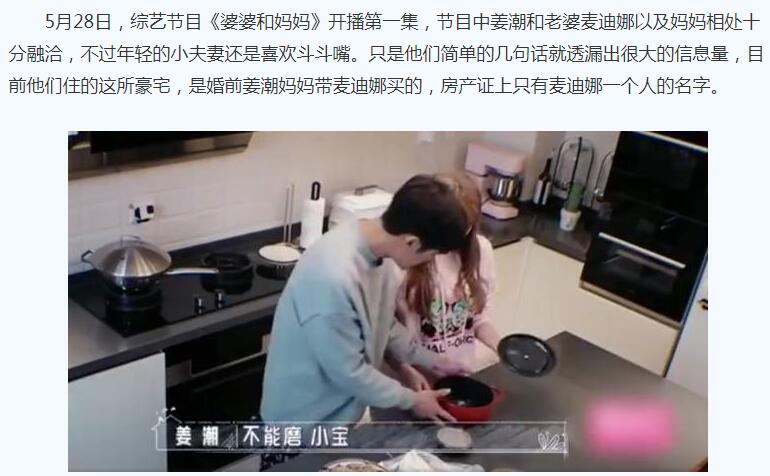 姜潮媽媽婚前給麥迪娜買房 網(wǎng)友:我差的不只房子還缺婆婆