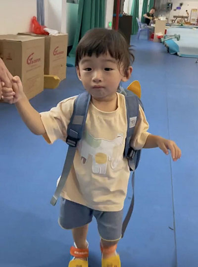 當天的何雯娜穿了一件黑色的短袖上衣,搭配了一條藍色的褲子,肩上挎著一個粉紅色的包,十分低調樸素。女兒穿著黃色的短袖,搭配了一條藍灰色的短褲,腳蹬撞色運動涼鞋背著藍底帶著小柯基的小書包。整個人顯得十分萌。