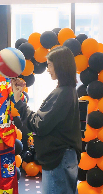 章子怡戴著獨角彩色假發(fā),她摟著女兒醒醒玩球,看起來比女兒玩得還要開心。看得出來,這一次一家五口過萬圣節(jié),章子怡真的是嗨翻了。
